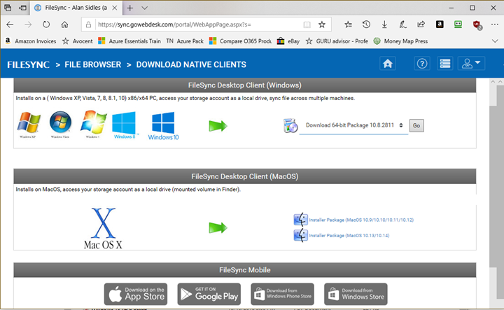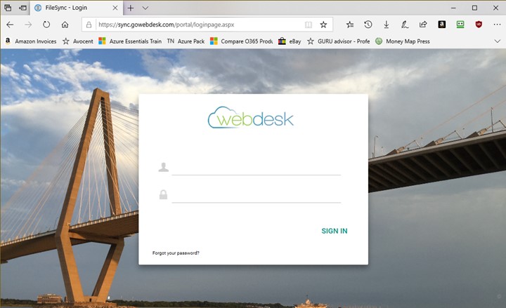 - Login to the FileSync server by browsing to: https://sync.gowebdesk.com/portal/loginpage.aspx and entering